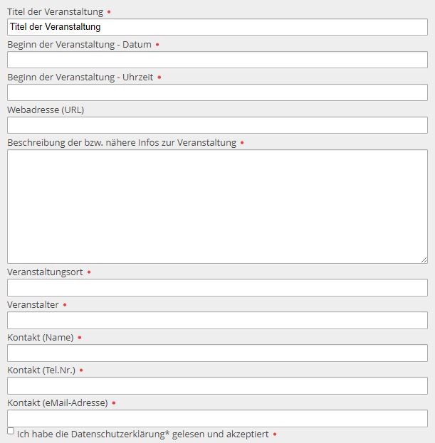 Eintrag einer Veranstaltung (im Veranstaltungskalender)